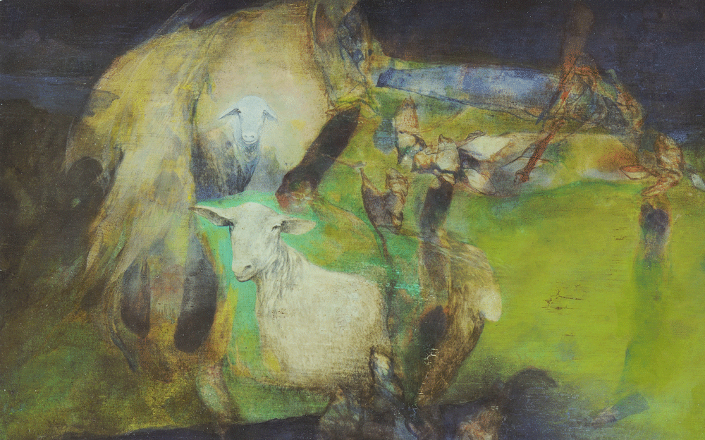 Des planches de Goya me reviennent, des Caprices, des Désastres, le Christ bafoué de Fra Angelico, la vie de saint François de Giotto. Ces histoires d’art se mêlent et la rêverie me ramène vers les alpages, vers ces moutons que mes yeux grands ouverts fixent. Penché sur ma feuille de dessin, je ne sais toujours pas pourquoi. Bien sur, il y a tous ces croquis et ces photos accumulés. Quand est-ce que tout cela a commencé? Le souvenir d’une brebis soignée dans les Pyrénées, les soirées avec des bergers d’un autre temps, la longue procession blanche sur sur une sente ceinte de vert, le troupeau clos sur lui même pour se protéger de la neige, l’innocence peinte dans les tableaux, cette peinture de Raphael que j’essayais de copier quand j’avais douze ans? Ma vie d’homme? Est ce que ces moutons ne seraient depuis le départ qu’un besoin pressant de raconter des histoires d’homme?